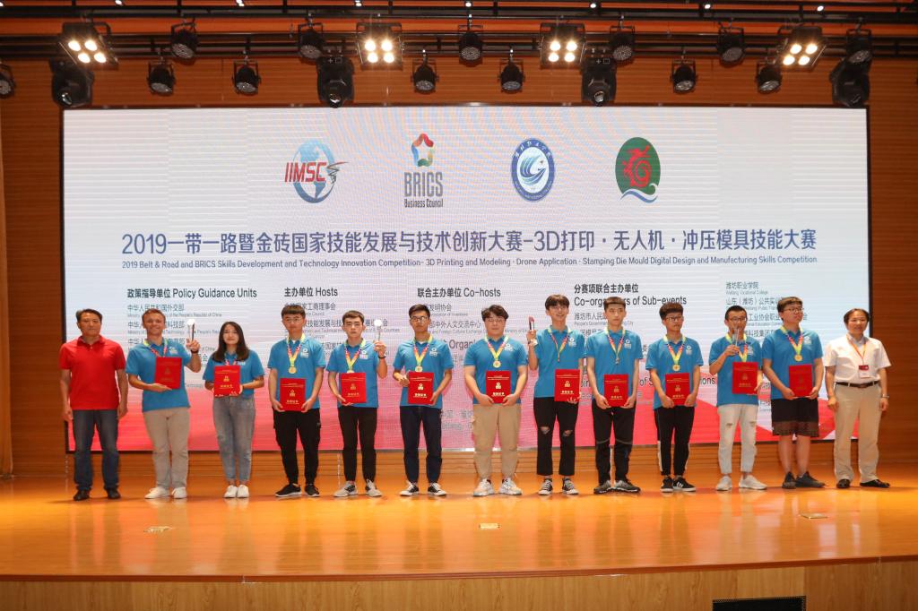来自全国的108支代表队和6支国际代表队进行了为期两天紧张、激烈的技能比拼,最终决出冲压模具中国赛区决赛3支代表队获一等奖、6支代表队获二等奖、9支代表队获三等奖;3D打印中国赛区决赛3支代表队和beat365英国官方网站集训队哈萨克斯坦选手获一等奖、6支代表队和beat365英国官方网站集训队印度选手获二等奖、9支代表队和beat365英国官方网站集训队巴基斯坦选手获三等奖;无人机(高职组)中国赛区决赛3支代表队和beat365英国官方网站集训队孟加拉国选手获一等奖、6支代表队和beat365英国官方网站集训队塔吉克斯坦选手获二等奖、9支代表队和beat365英国官方网站集训队乌兹别克斯坦选手获三等奖;无人机(中职组)中国赛区决赛2支代表队获一等奖、4支代表队获二等奖、5支代表队获三等奖。此外,本届大赛还评出了大赛优秀组织奖、最佳组织奖、竞赛支持奖、优秀指导教师奖和beat365英国官方网站、山东(潍坊)公共实训基地、中国模具工业协会职业教育委员会、北京精雕科技集团有限公司、北京华奥复兴科技有限公司、深圳市创想三维科技有限公司获得突出贡献奖。