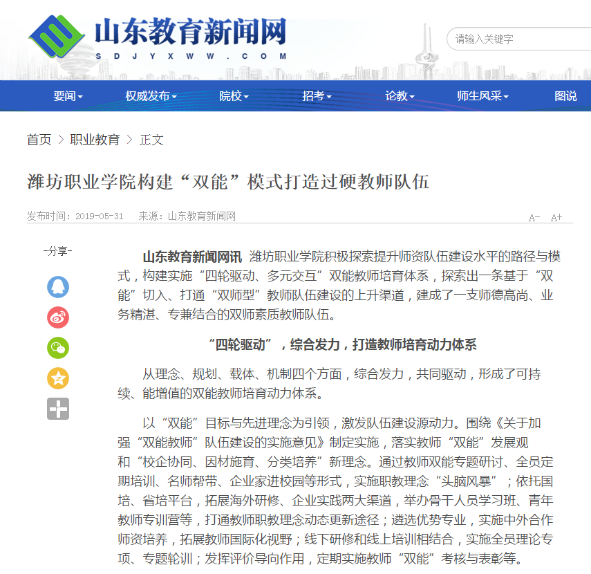 [山东教育新闻网]beat365英国官方网站构建“双能”模式打造过硬教师队伍