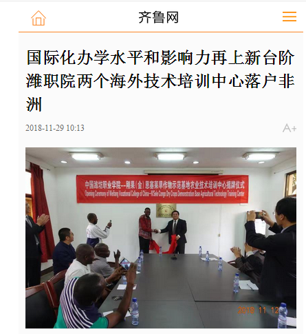 [齐鲁网]国际化办学水平和影响力再上新台阶 潍职院两个海外技术培训中心落户非洲