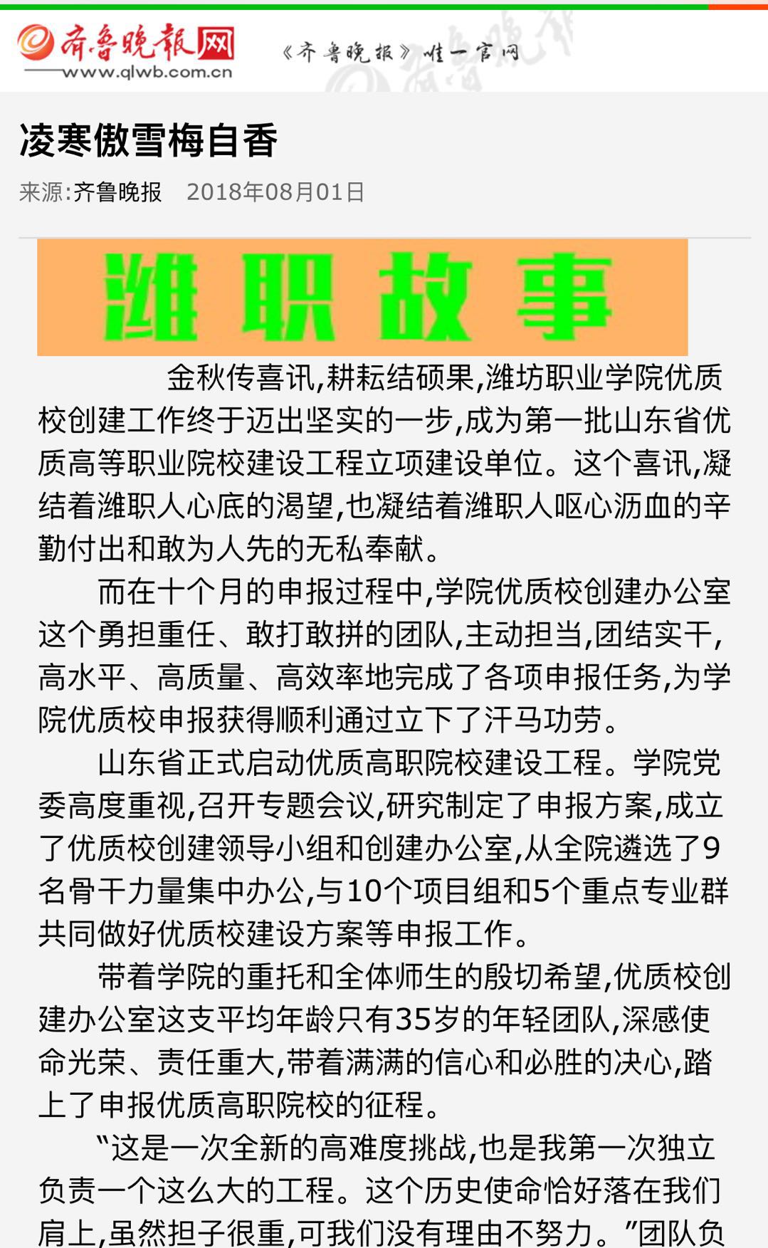 [齐鲁晚报]凌寒傲雪梅自香——记beat365英国官方网站优质校创建办公室先进事迹