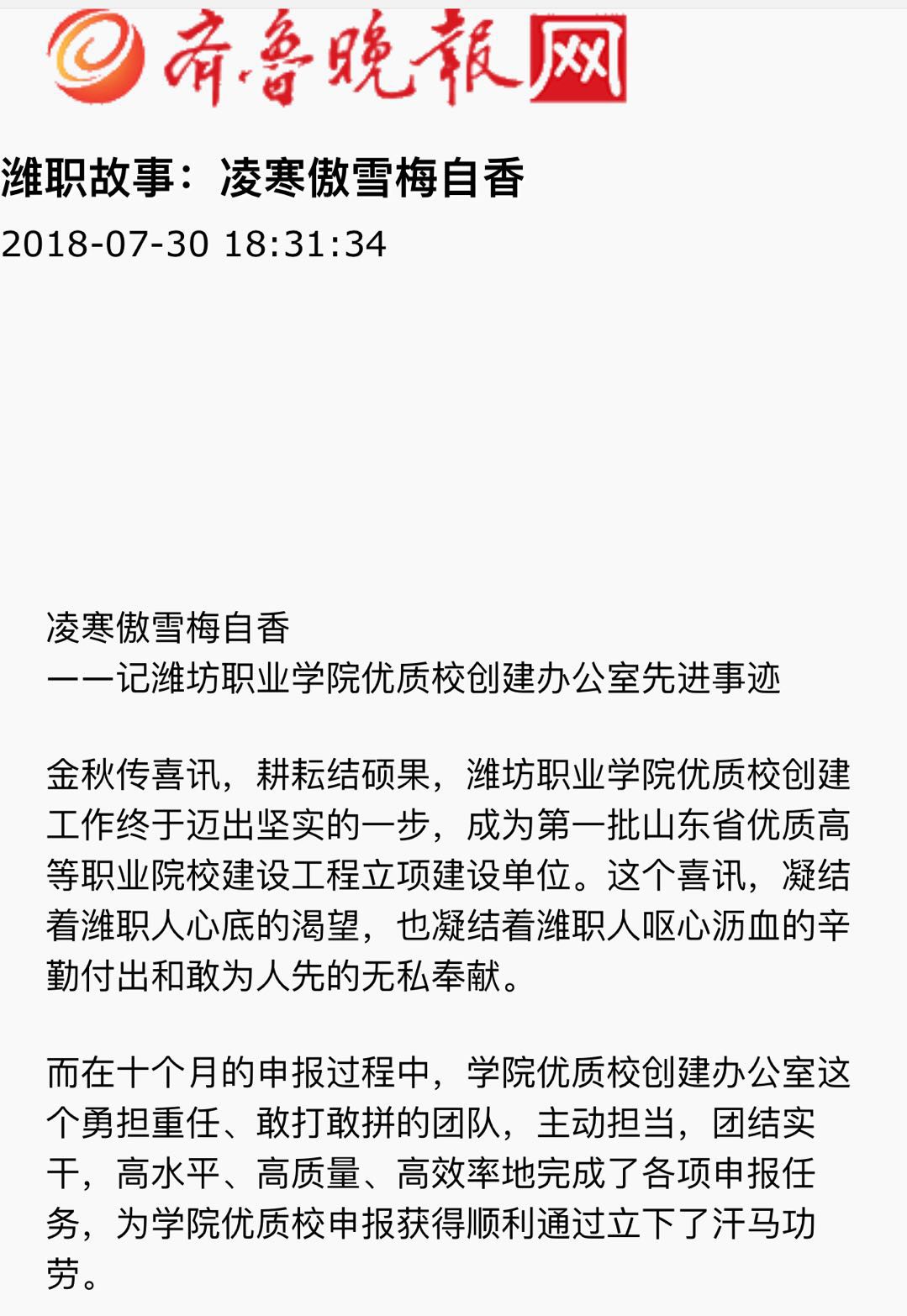 [齐鲁晚报]凌寒傲雪梅自香——记beat365英国官方网站优质校创建办公室先进事迹