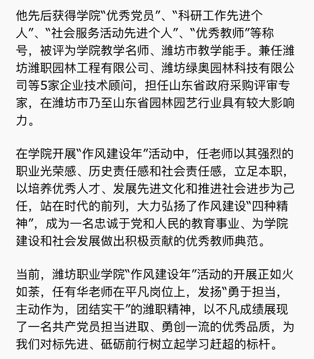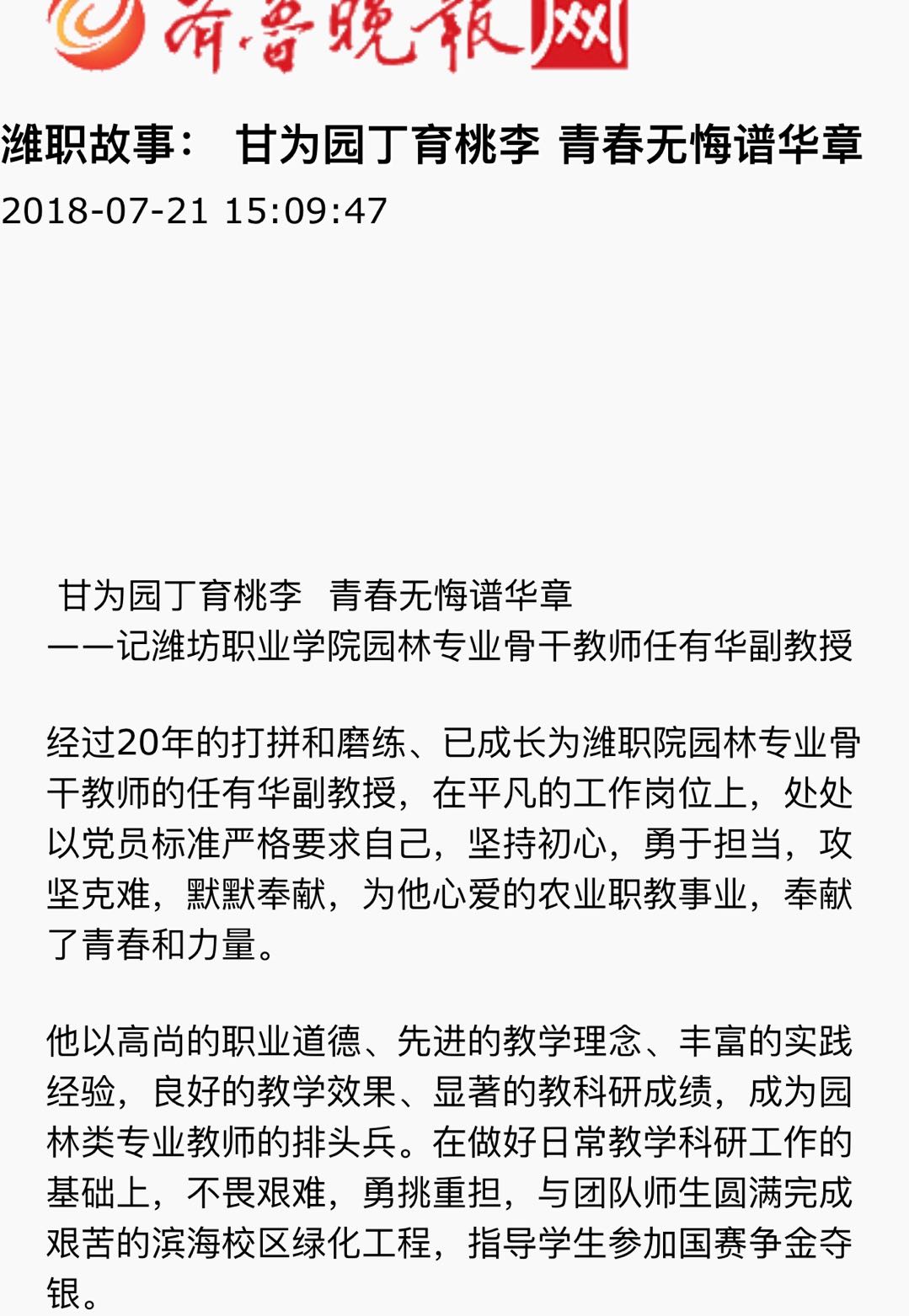 [齐鲁晚报]潍职故事:甘为园丁育桃李 青春无悔谱华章——记beat365英国官方网站园林专业骨干教师任有华副教授