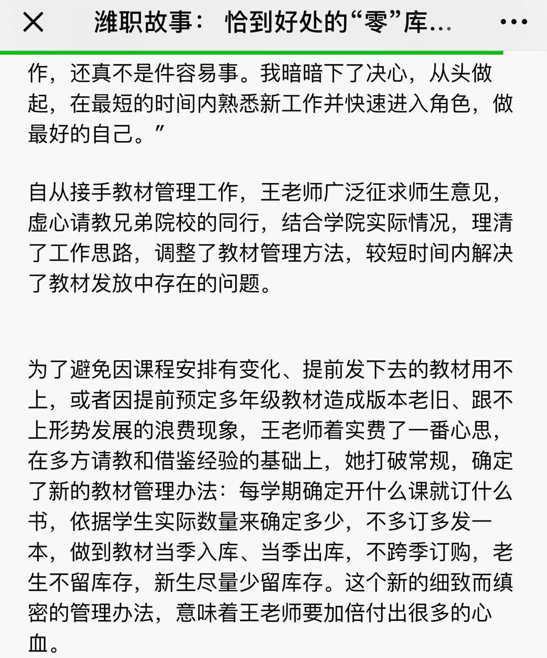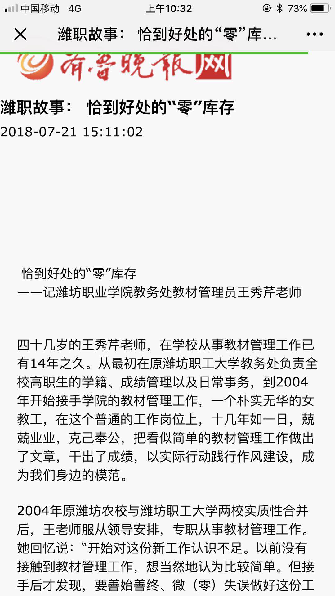 [齐鲁晚报]潍职故事:恰到好处的“零”库存——记beat365英国官方网站教务处教材管理科王秀芹老师