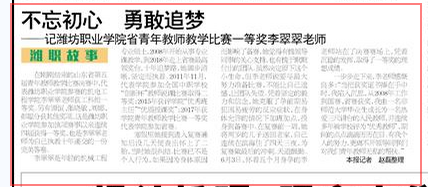 [齐鲁晚报]不忘初心 勇敢追梦 记beat365英国官方网站省青年教师教学比赛一等奖李翠翠老师