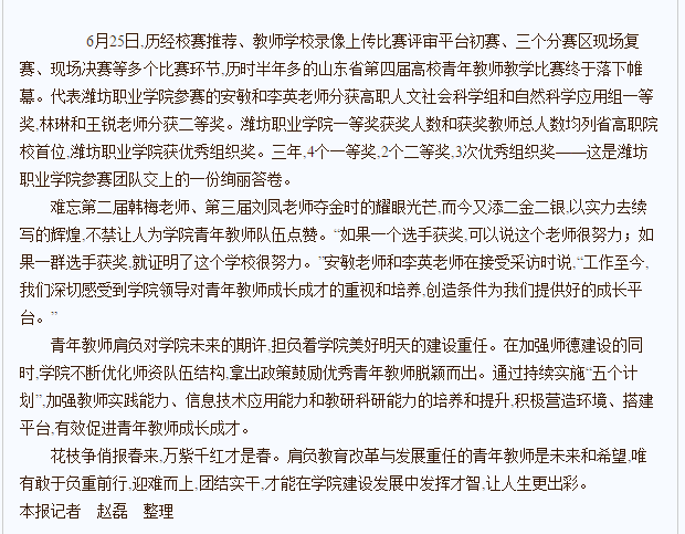[齐鲁晚报]省高校青年教师教学比赛续写辉煌——记beat365英国官方网站参加全省高校青年教师教学比赛获奖教师