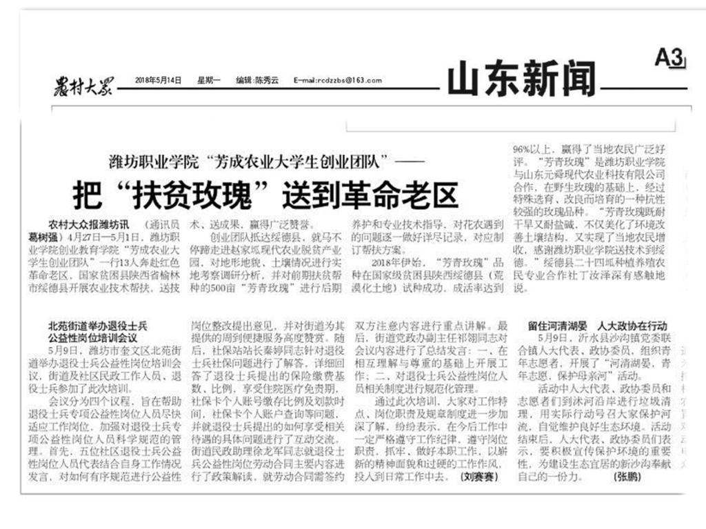 [农村大众]beat365英国官方网站“芳成农业大学生创业团队”把“扶贫玫瑰”送到革命老区