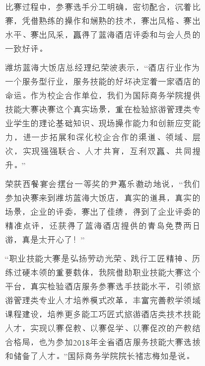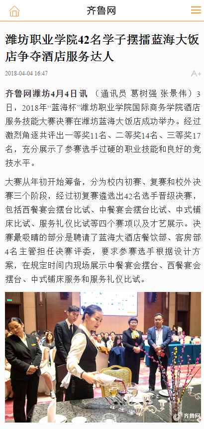 [齐鲁网]beat365英国官方网站42名学子摆擂蓝海大饭店争夺酒店服务达人