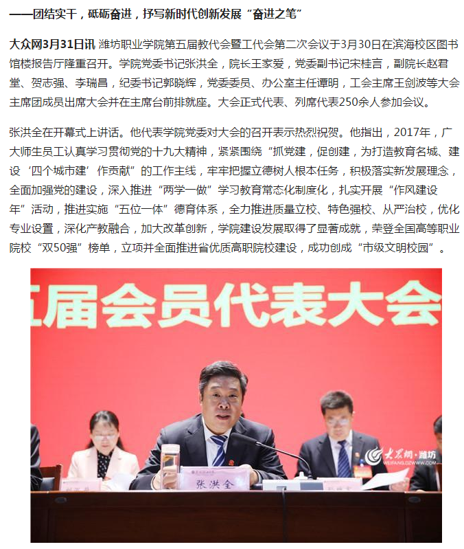 [大众网]beat365英国官方网站第五届教代会暨工代会第二次会议隆重召开