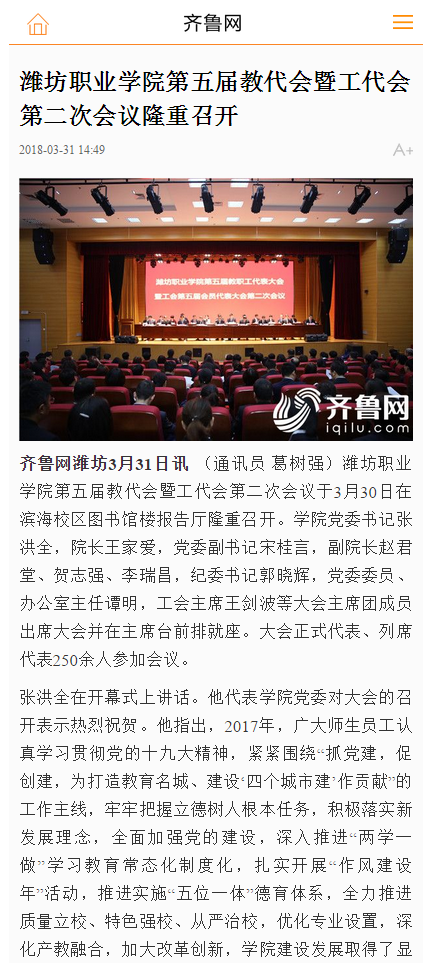 [齐鲁网]beat365英国官方网站第五届教代会暨工代会第二次会议隆重召开