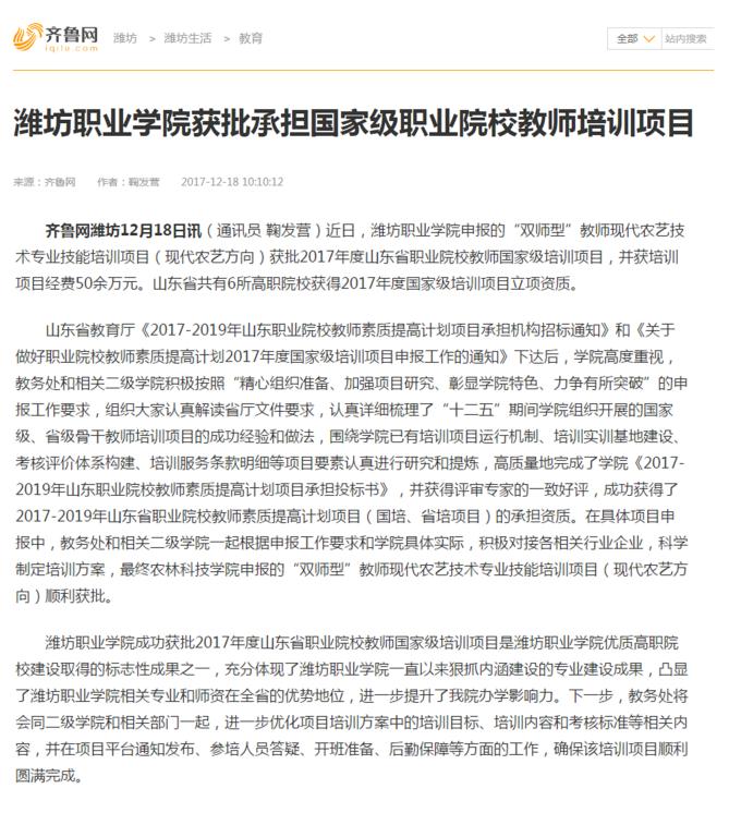 [齐鲁网]beat365英国官方网站获批承担国家级职业院校教师培训项目