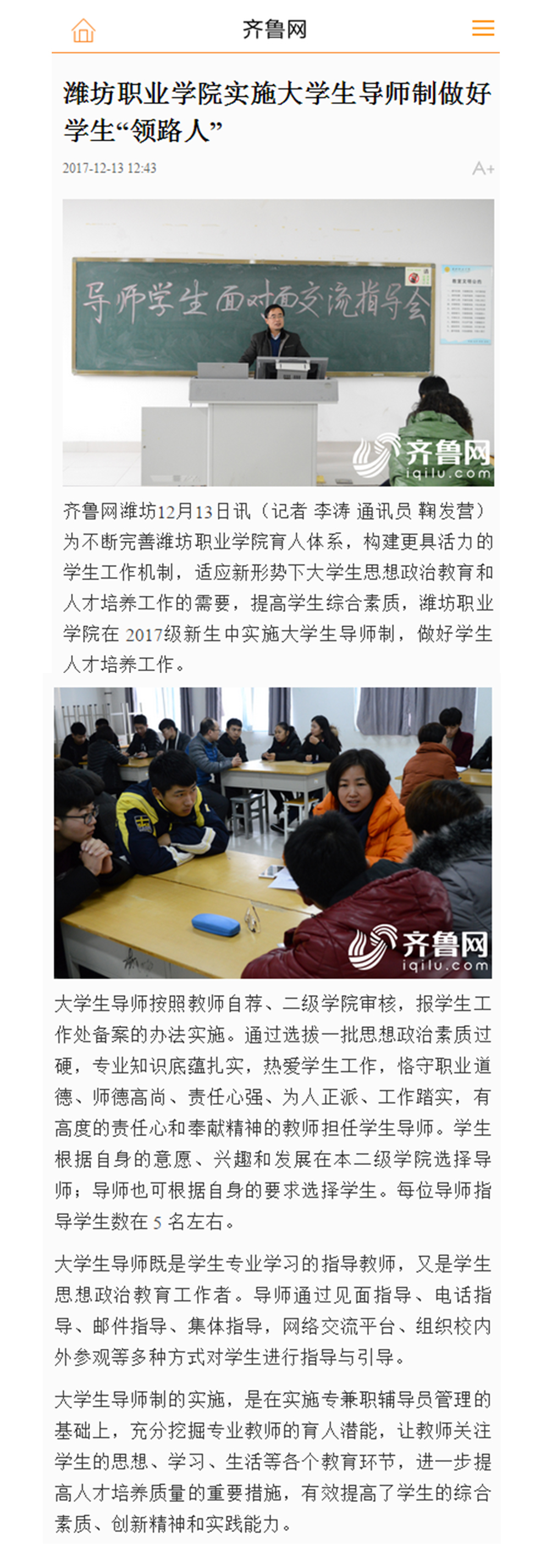 [齐鲁网]beat365英国官方网站实施大学生导师制做好学生“领路人”