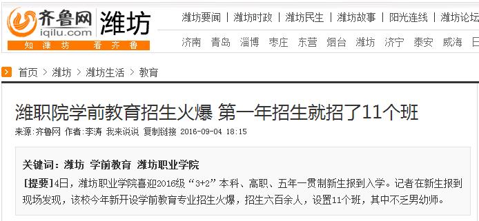 [齐鲁网]潍职院学前教育招生火爆 第一年招生就招了11个班