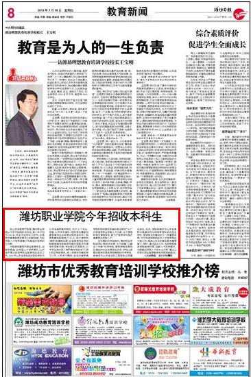 媒体潍职:[潍坊日报]beat365英国官方网站今年招收本科生
