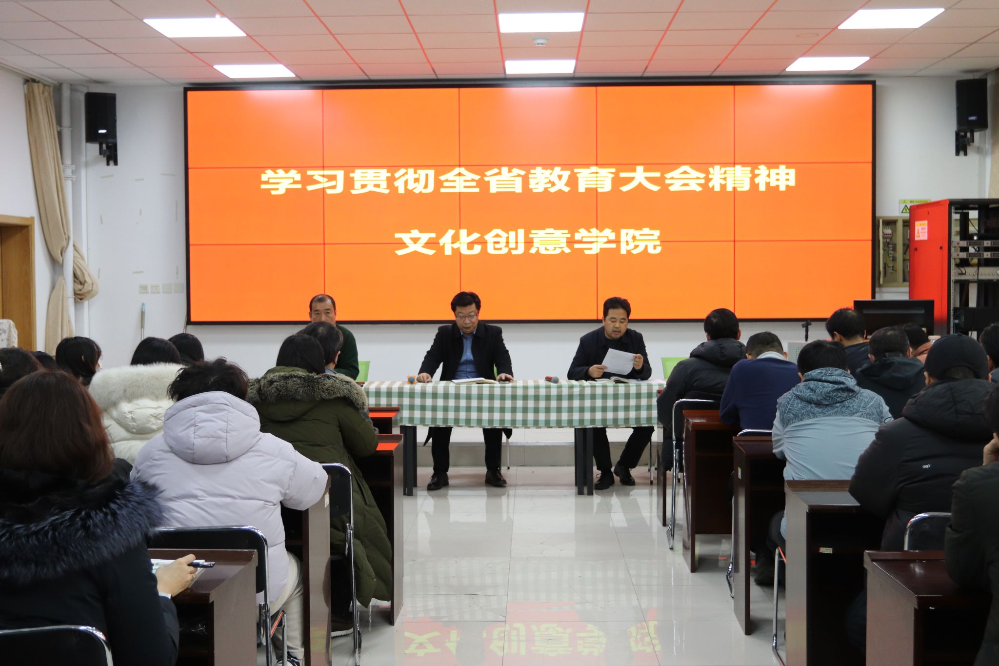 12月10日下午,文化创意学院组织全体教师在奎文校区16号楼523会议室学习全省教育大会精神,部署贯彻落实工作。