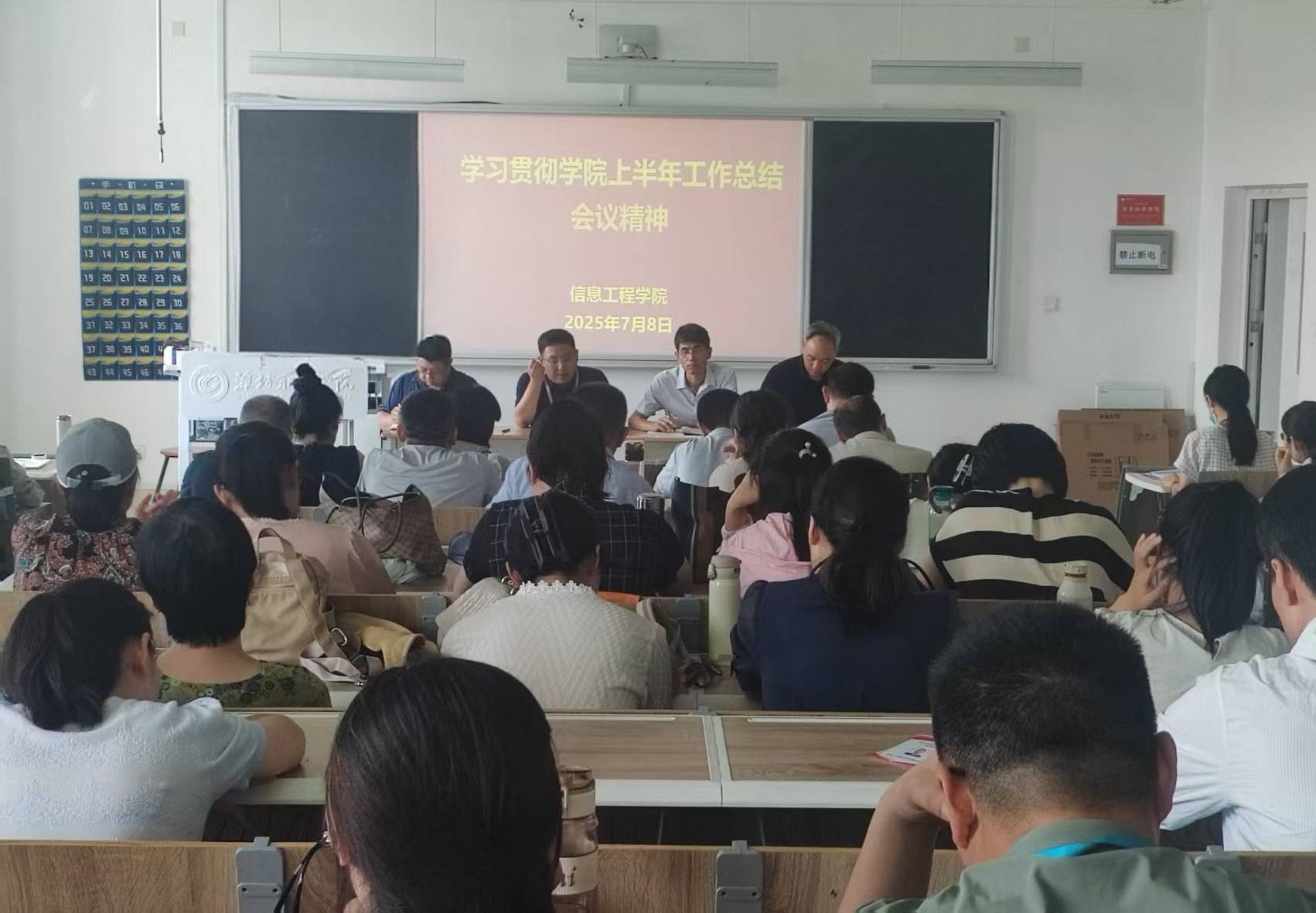 7月8日下午,信息工程学院在滨海校区智泽1号楼A216召开学习贯彻学院第二次党代会和学院2025年上半年工作总结会精神专题会议,安排部署暑期重点工作,全体教师参加。