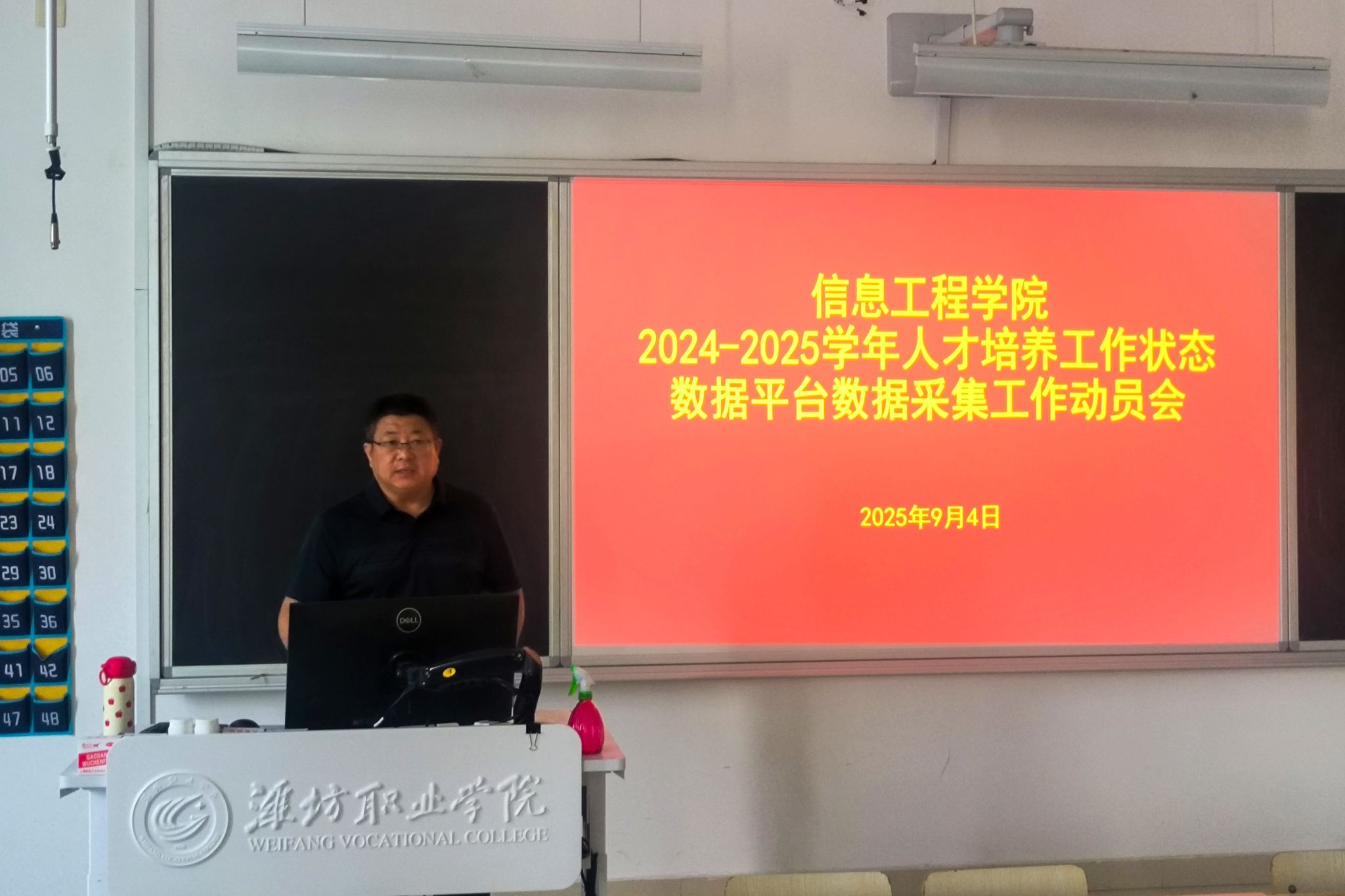 为落实学院《关于做好2024-2025学年高等职业院校人才培养工作状态数据采集工作的通知》要求,高质量完成本年度数据采集工作,9月4日下午,信息工程学院在智泽1号楼A216教室召开人才培养工作状态数据采集工作动员及培训会。