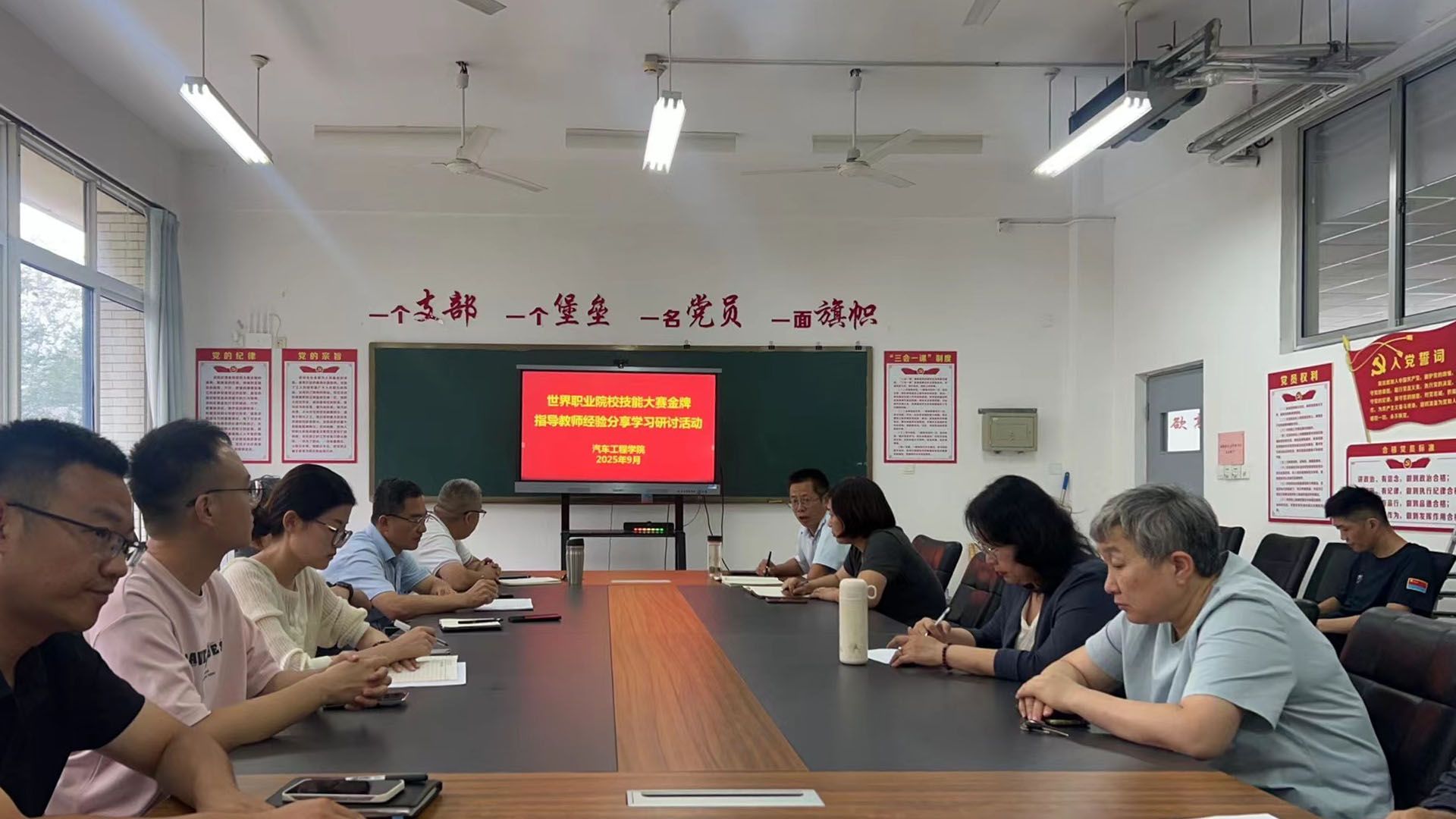 活动开篇,大家集体观看了2025年斩获世界职业院校技能大赛赛项金牌的两位指导教师经验分享视频。随后,与会人员结合2025年山东省职业院校技能大赛汽车制造与维修赛道特点,梳理当前大赛准备存在的问题,并研讨制定针对性提升计划。