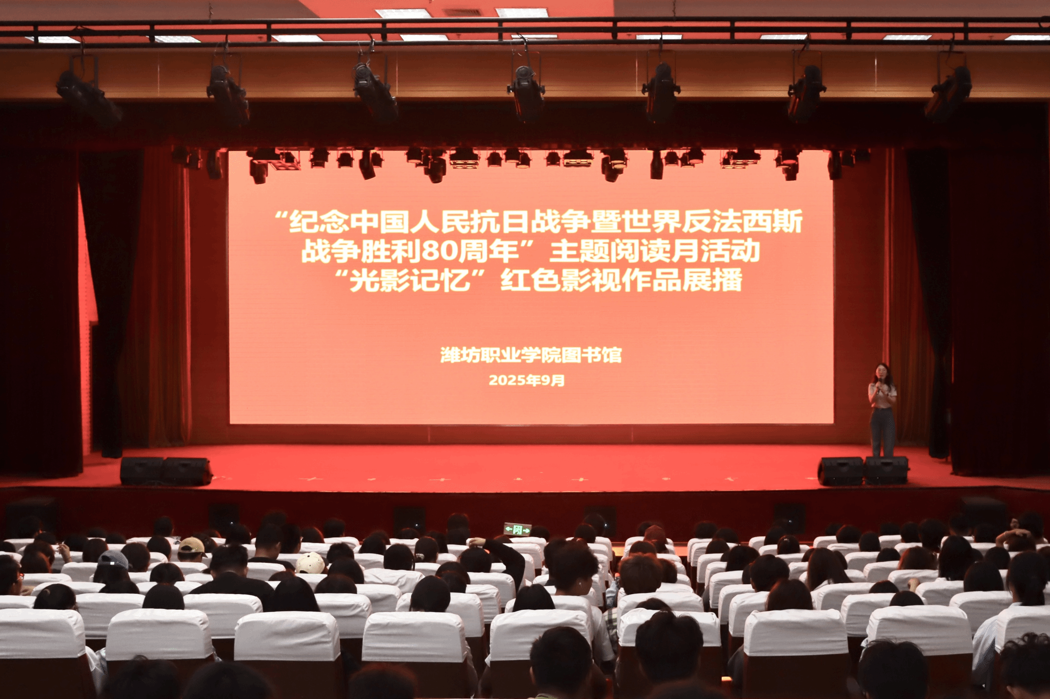 为深入贯彻落实学院《校园阅读工作实施方案》,引导青年学子铭记历史、缅怀先烈、珍爱和平、开创未来,9月25日下午,图书馆在报告厅举办“光影记忆”红色影视作品展播活动。本次活动以经典抗战影片《南京!南京!》为核心展播内容,各二级学院的335名学生代表参加。