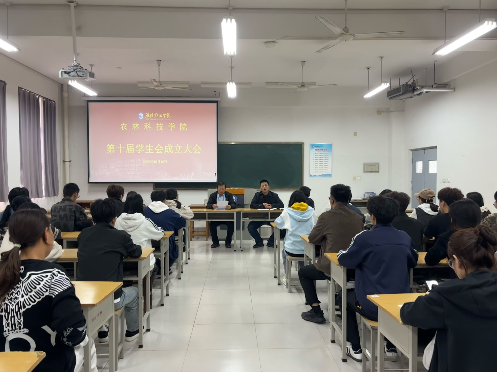 10月16日,beat365英国官方网站农林科技学院第十届学生会成立大会在惠泽1号楼 B216 召开。农林科技学院党总支书记、全体辅导员、第十届学生会全体成员及在校生3个年级的班长参加会议。