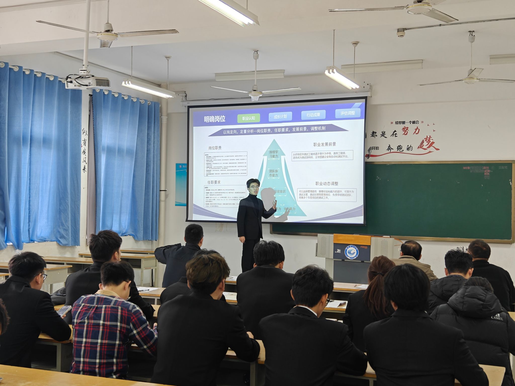 本次比赛共吸引60名各年级学生积极参与,评审团由专业教师和辅导员共同组成。比赛中,选手们围绕“筑梦青春志在四方 规划启航职引未来”主题,依次上台展示个人职业规划方案。大家立足汽车工程领域的发展动态,从自我评估、行业前景、职业目标设定到具体执行路径,进行了富有创意且条理清晰的阐述。评委结合当前职业规划领域的前沿趋势进行提问,选手基于自身学习经历、生活感悟以及社会背景等多个角度予以回应。评委凭借丰富的行业经验与专业视角,从专业性、可行性、创新性等维度,为每位选手提供了全面而深入的指导建议。现场气氛热烈,既反映出同学们对未来职业发展的深入思考,也促进了师生之间的良性互动与思维碰撞。