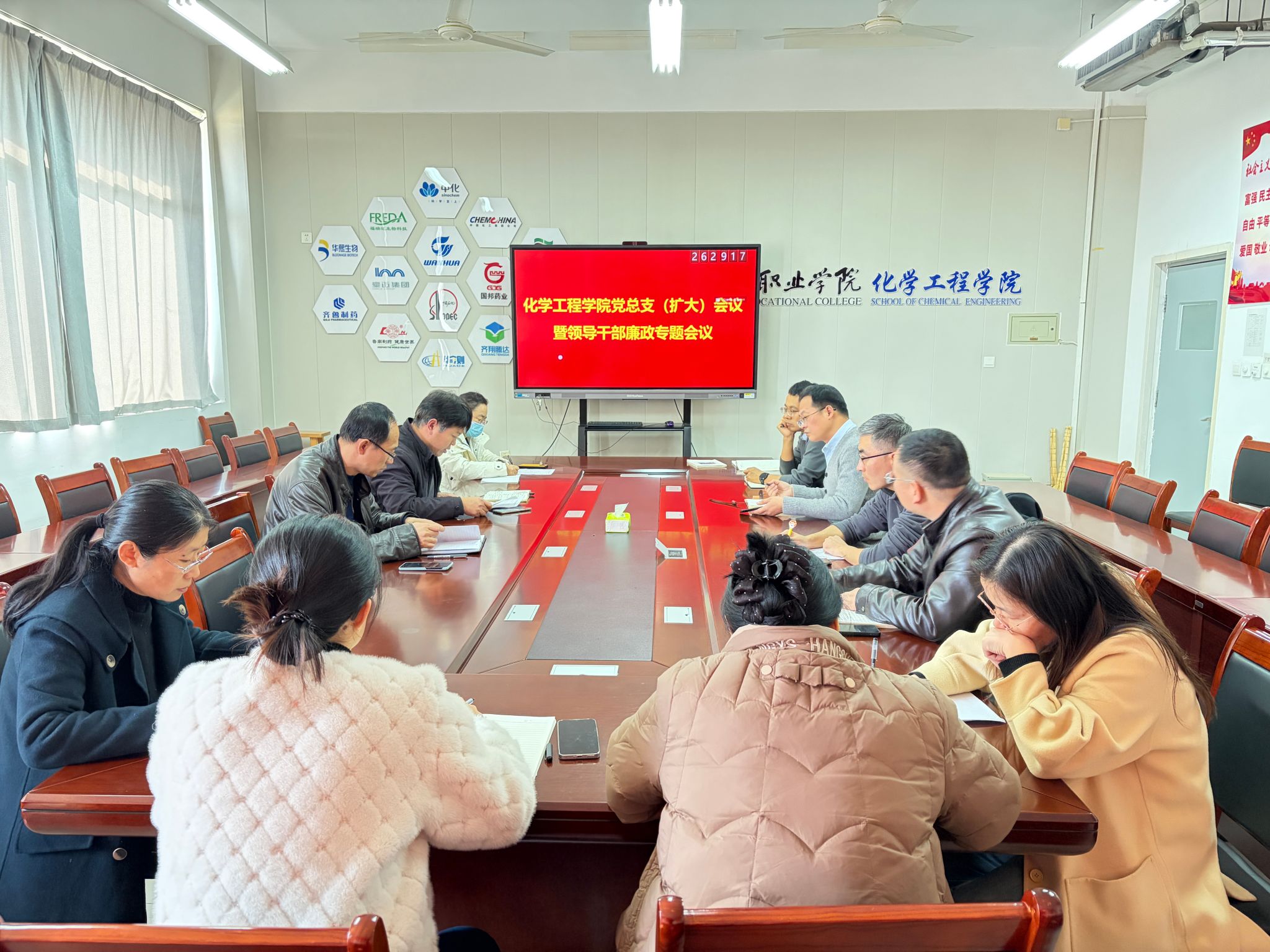 11月10日下午,化学工程学院在滨海校区惠泽1号楼A304召开党总支(扩大)会议暨领导干部廉政专题会议,beat365党总支委员、专职组织员及各科室负责人参会。