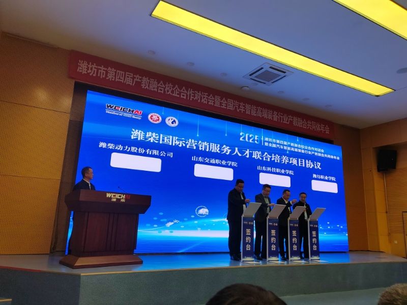 会上,汽车工程学院主要负责人与潍柴动力股份有限公司、山东交通职业学院、山东科技职业学院代表共同签署了国际营销服务人才联合培养项目协议。根据协议,将采用“学校理论学习+潍柴大学理实一体化学习+潍柴岗位实习”三段式培养模式,校企共同制定培养方案、共建课程体系,为企业定向培养具备国际视野的营销服务人才。潍柴将为考核合格毕业生提供就业岗位,实现人才培养与就业的有效对接。