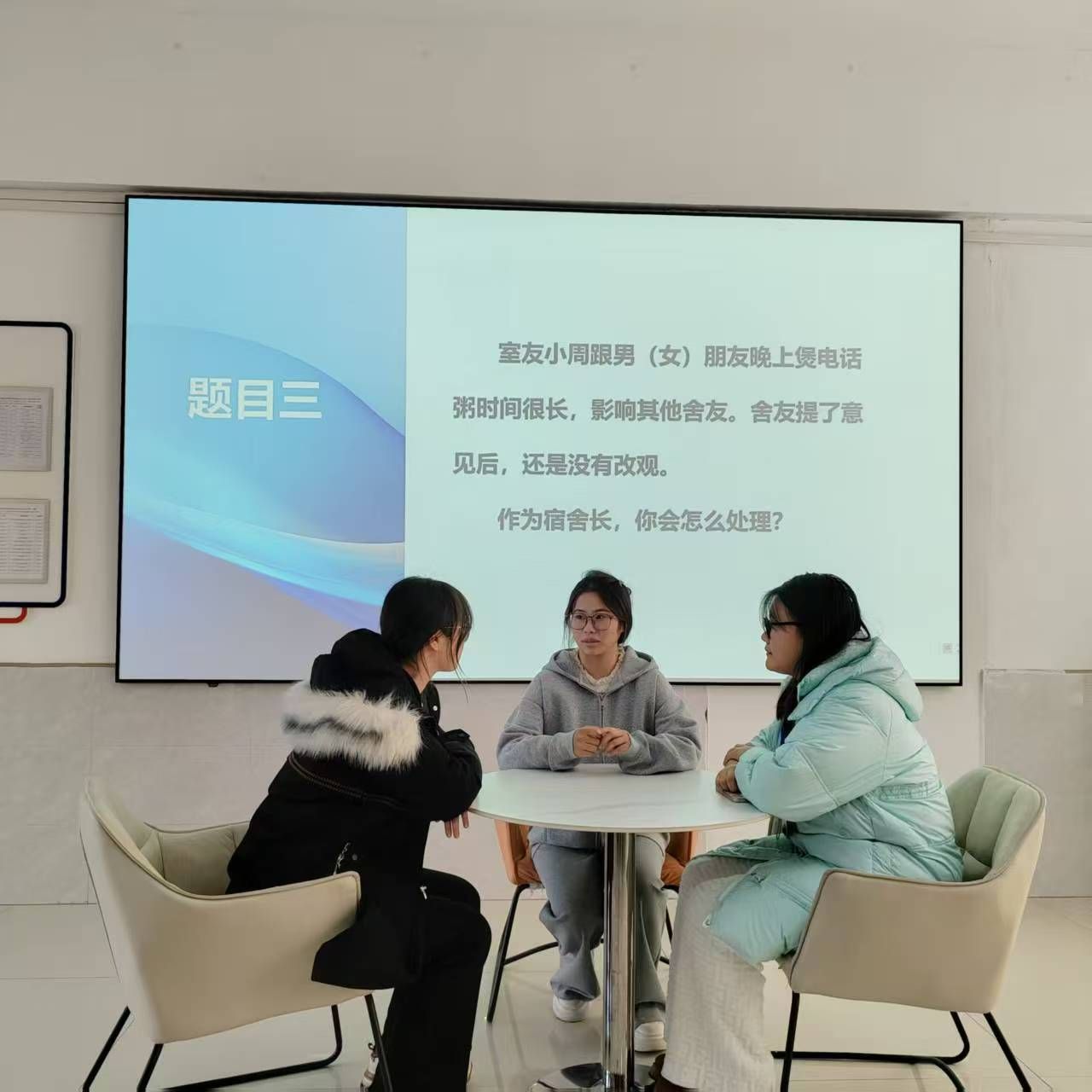 为了让比赛贴合实际需求、直击宿舍管理痛点,活动前期,主办方开展深入调研,面向蕙兰社区全体宿舍长广泛收集宿舍日常管理中常见的实际问题,并基于真实诉求科学设计比赛题目。比赛采用“情景模拟+思路答辩”模式,选手随机抽取真实宿舍问题场景,与工作人员扮演的“舍友”沟通协调,提出切实可行的解决方案,展现出了良好的沟通技巧、应变能力与责任意识。评委团队从问题分析、解决方案、沟通技巧、应变能力四个维度进行综合评分,最终评选出一、二、三等奖。