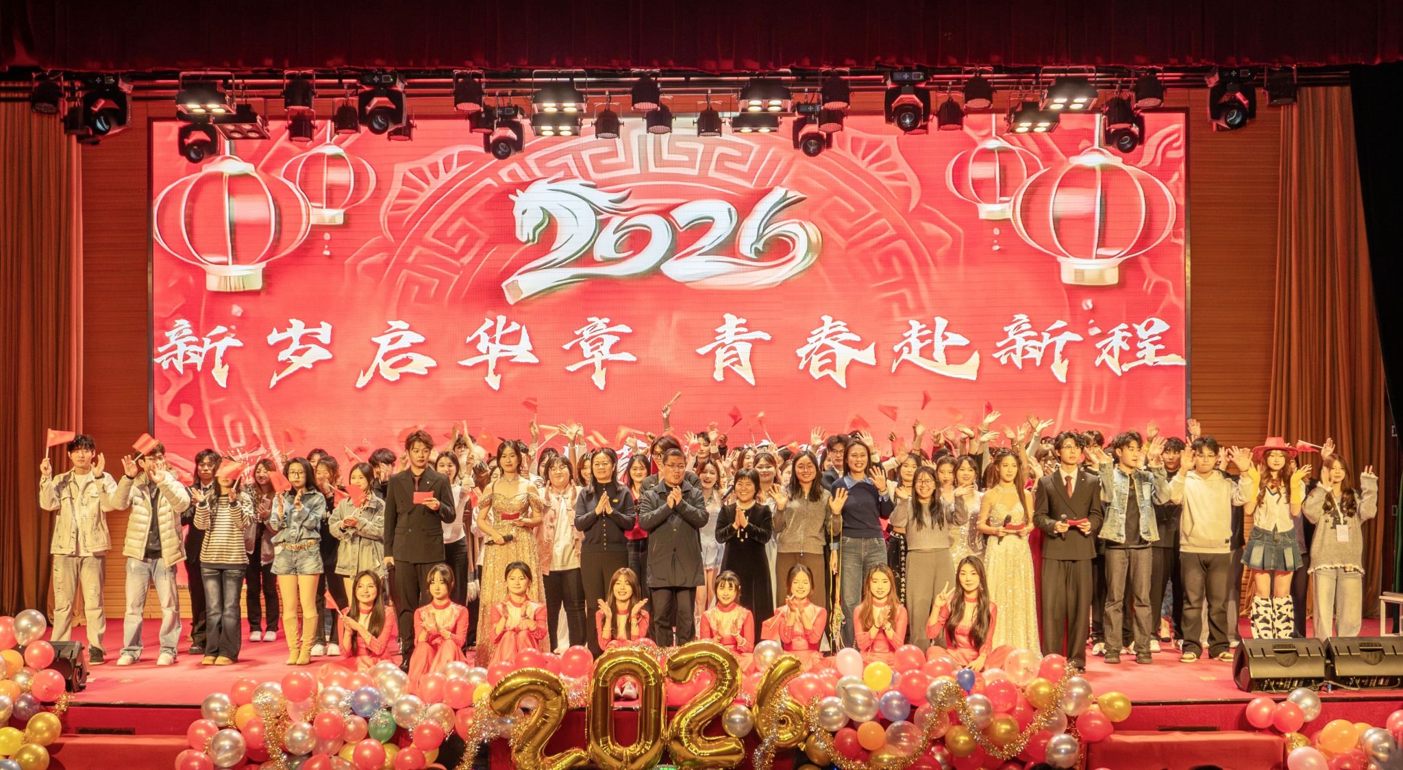 互动环节精彩不断。随机舞蹈挑战吸引众多学子即兴登台,尽显青春风采;走秀《山河雅颂》融合国风服饰与山河意象,步伐间彰显文化自信。歌曲《年少有为》深情动人,引发共鸣;小品《非诚不找》诙谐幽默,笑声满堂。晚会以歌曲《明天会更好》结束,满怀师生对学院发展的美好祝愿。