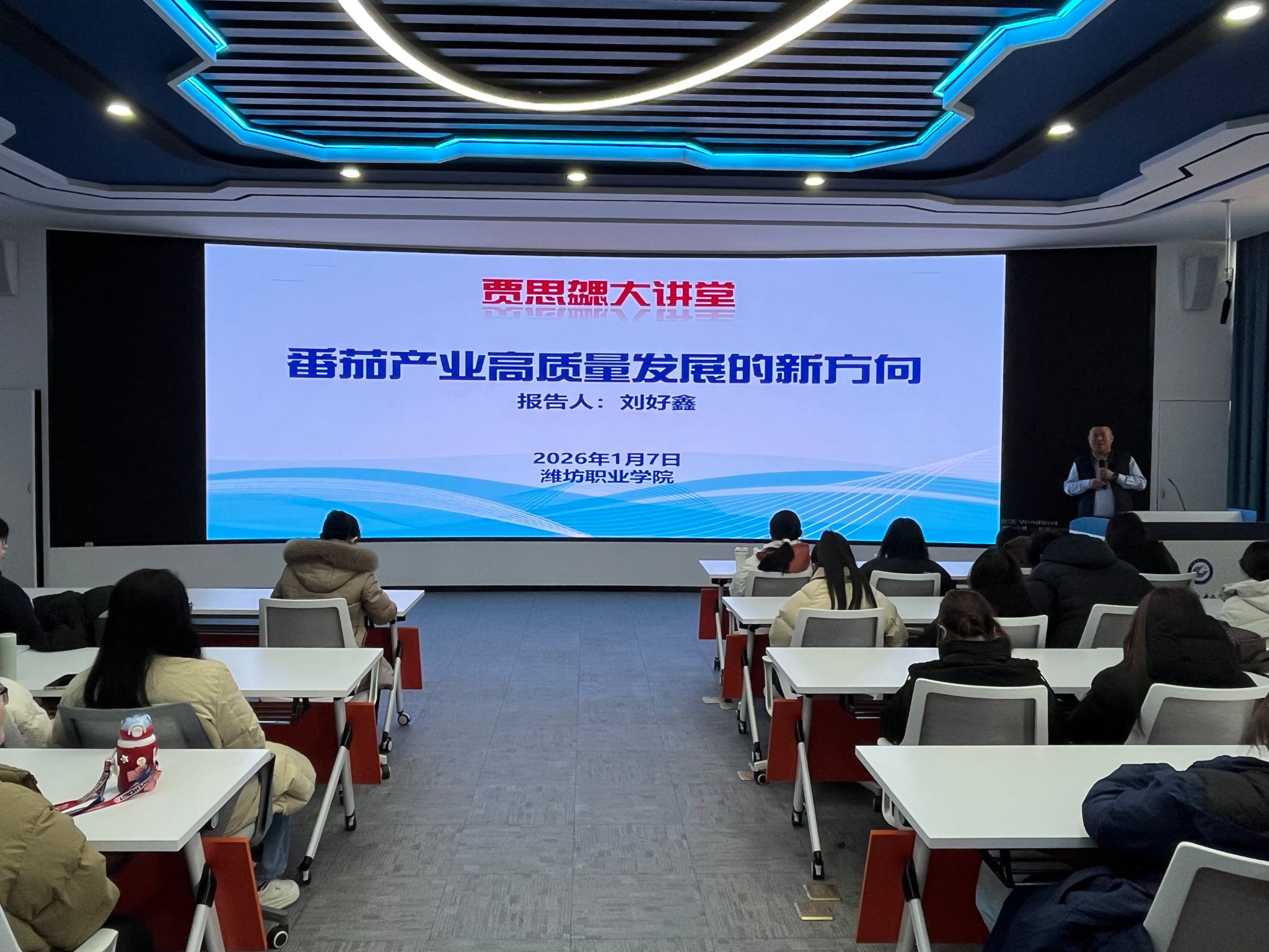 1月7日,农林科技学院在金泽楼C101举办“贾思勰大讲堂”系列活动。活动邀请潍坊荷花园负责人宋立东与喜柿(潍坊)农业科技有限公司总经理刘好鑫两位产业教授,为师生带来了一场融合前沿技术与创业实践的专题报告。活动分为专题报告与面对面交流两个环节,农林科技学院200余名师生参加。