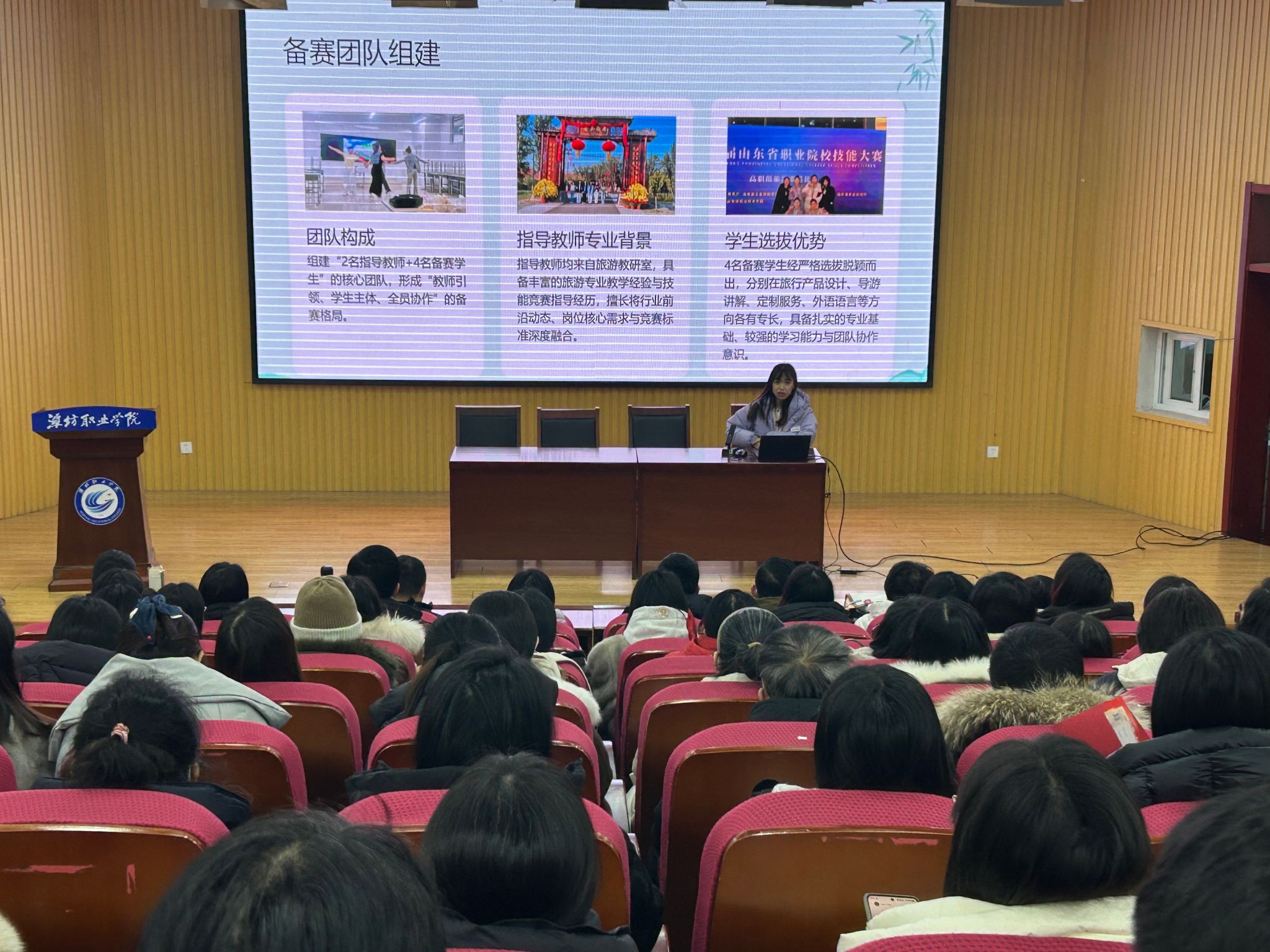 会上,beat365负责人通报了2025年省职业院校技能大赛的整体情况。过去一年,beat365持续深化“以赛促教、以赛促学、以赛促改”机制,旅游团队与商务英语团队历经近一年的深耕细作,圆满完成参赛任务,双双斩获大赛银奖,彰显了学院专业建设与人才培养方面的显著成效。在经验交流环节,获奖师生团队代表进行了深入分享。旅游赛道团队重点介绍了“阶段化、精准化”的备赛模式,分享了深入黄河沿线村庄开展实地考察、将黄河文化与乡村振兴战略融入项目设计的实战经验;商务英语团队则分享了如何紧扣“AI+”、“文化出海”等行业新趋势,通过多维打磨与全时段模拟训练,强化团队默契与临场应变能力的具体做法。