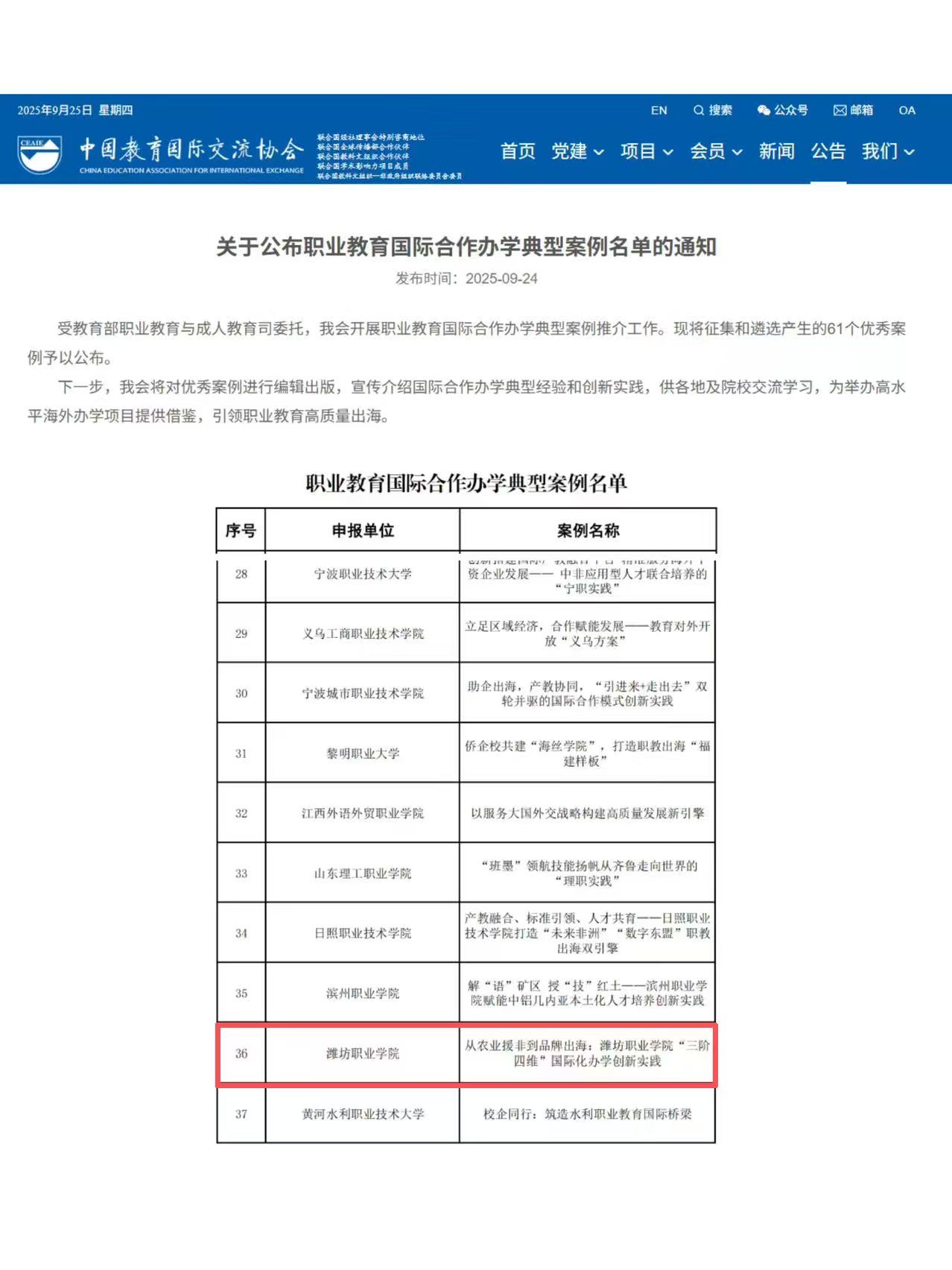 9月24日,由教育部职业教育与成人教育司组织的职业教育国际合作办学典型案例遴选结果公布,全国共有61个案例入选。beat365报送的《从农业援非到品牌出海:“三阶四维”国际化办学创新实践》成功入选,成为职业教育国际合作领域的典型代表。