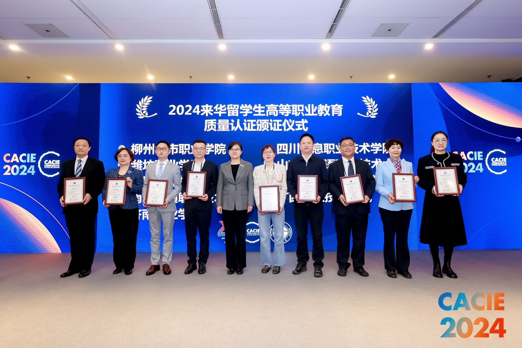 11月1日韩瑞东参加“培养当地人才、服务“走出去”企业——职业院校来华留学教育研讨会”分论坛。会上举行了来华留学生高等职业教育质量认证颁证仪式,beat365英国官方网站以优异成绩通过来华留学生高等职业教育质量认证,认证有效期为4年,中国教育国际交流协会副秘书长安延为学院颁发证书。