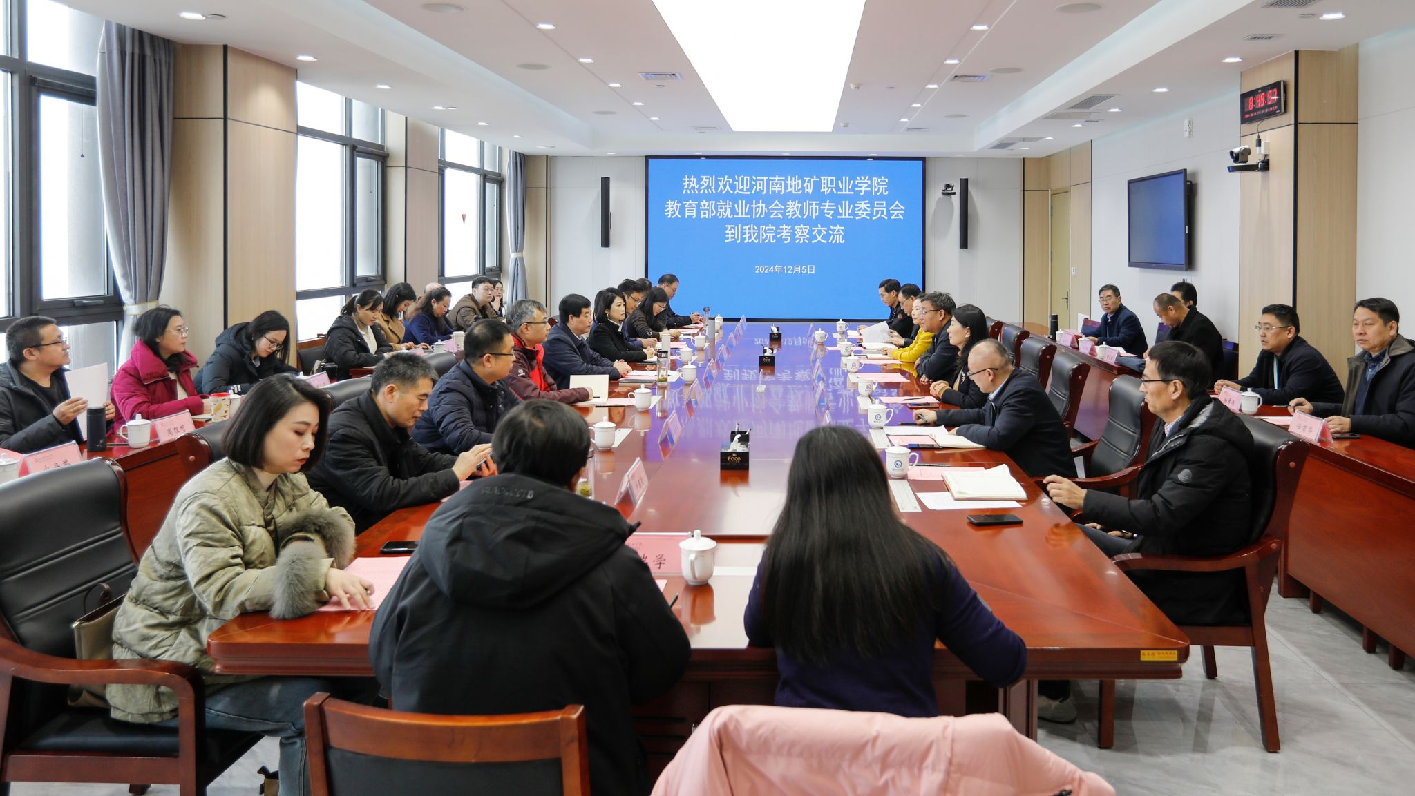 12月5日上午,河南地矿职业学院党委书记焦洪涛一行24人来beat365考察,教育部高校毕业生就业协会教师专业委员会副会长郭佳陪同考察。学院党委副书记韩瑞东,党委委员、办公室(统战部)主任(部长)刘志艳出席活动,教师工作部、教务处、科技处、资产管理处和通识教育中心、机电工程学院、信息工程学院等相关部门、二级学院负责同志参加活动。