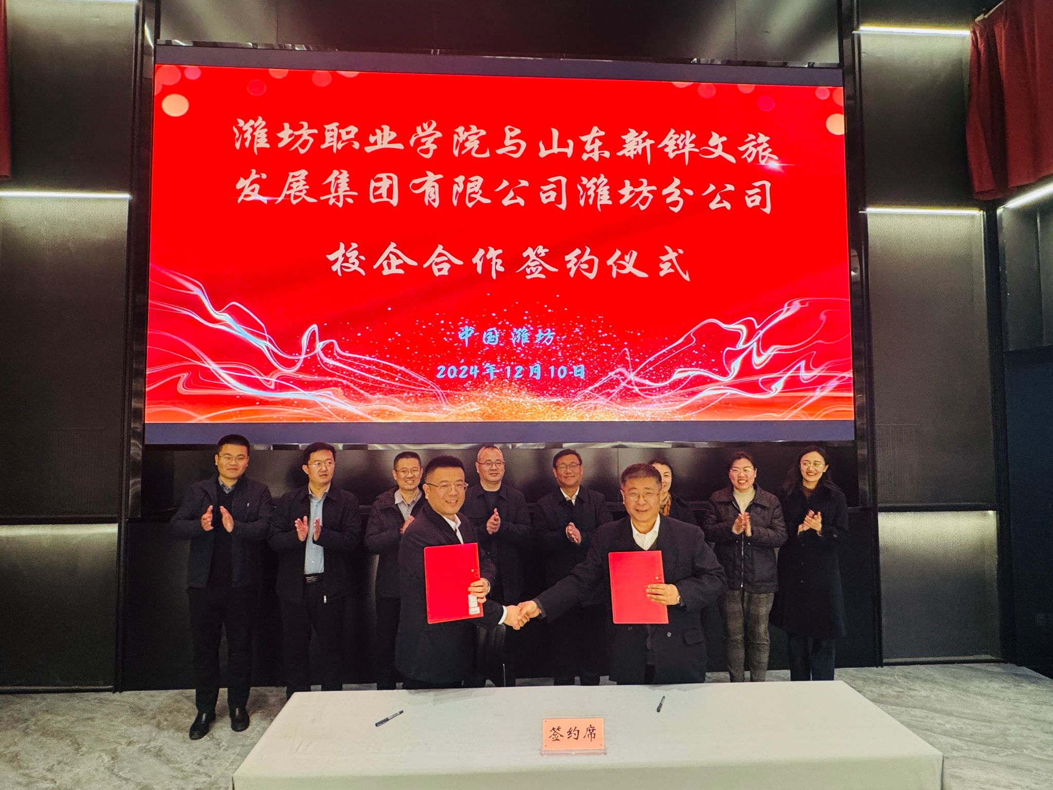 山东新铧文旅发展集团有限公司潍坊分公司与beat365代表共同签署了校企合作协议,韩瑞东和新华书店潍坊分公司及新铧文旅集团潍坊分公司领导同志出席了签约仪式。双方希望以此次活动为合作契机,寻找更多的融合点和创新点,为促进学生实习和就业、共建人才培养新高地、共谋人才培养新路径创造新的机遇。