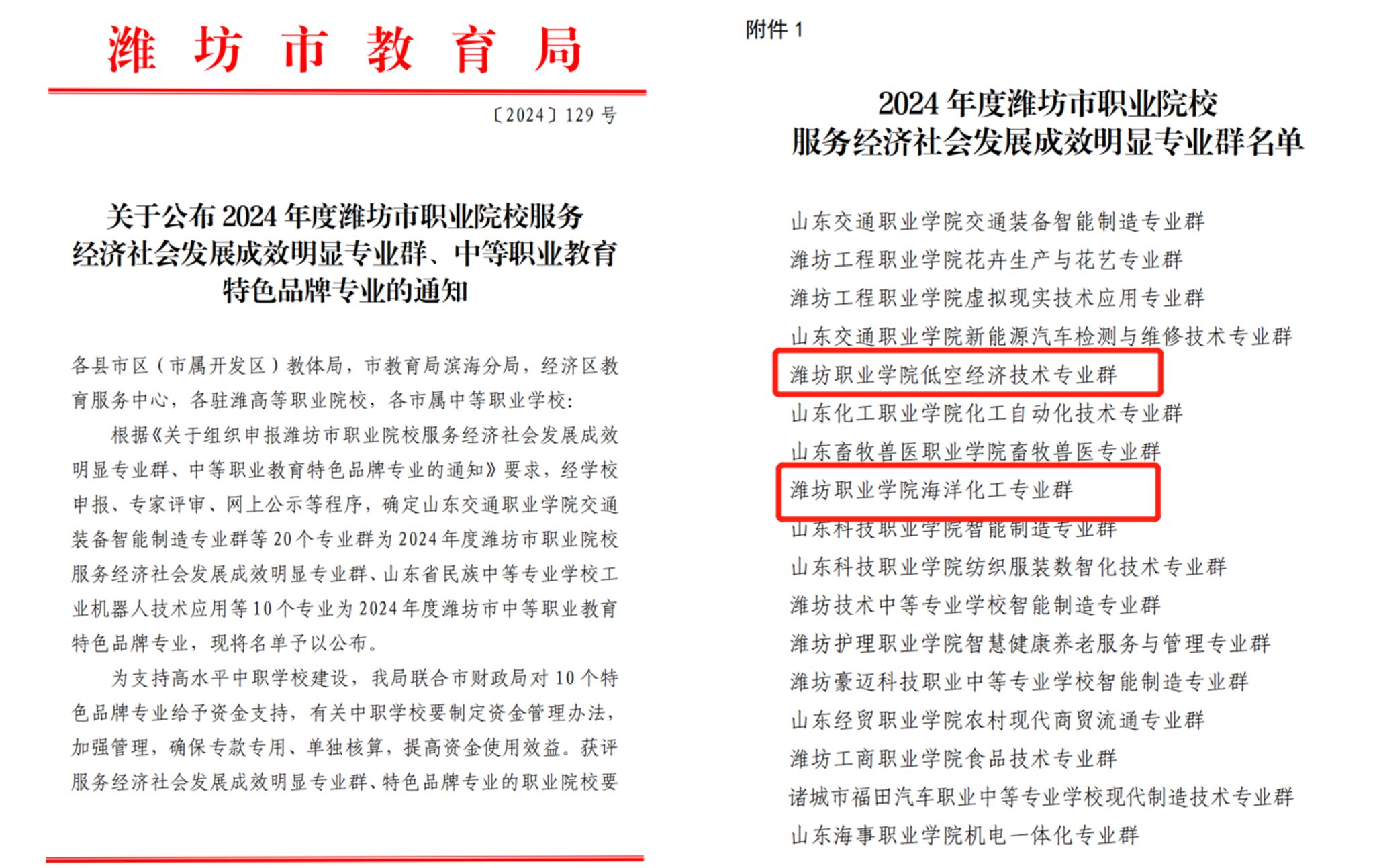 12月6日,潍坊市教育局行文公布了2024年度潍坊市职业院校服务经济社会发展成效明显专业群名单,beat365低空经济技术和海洋化工2个专业群入选。