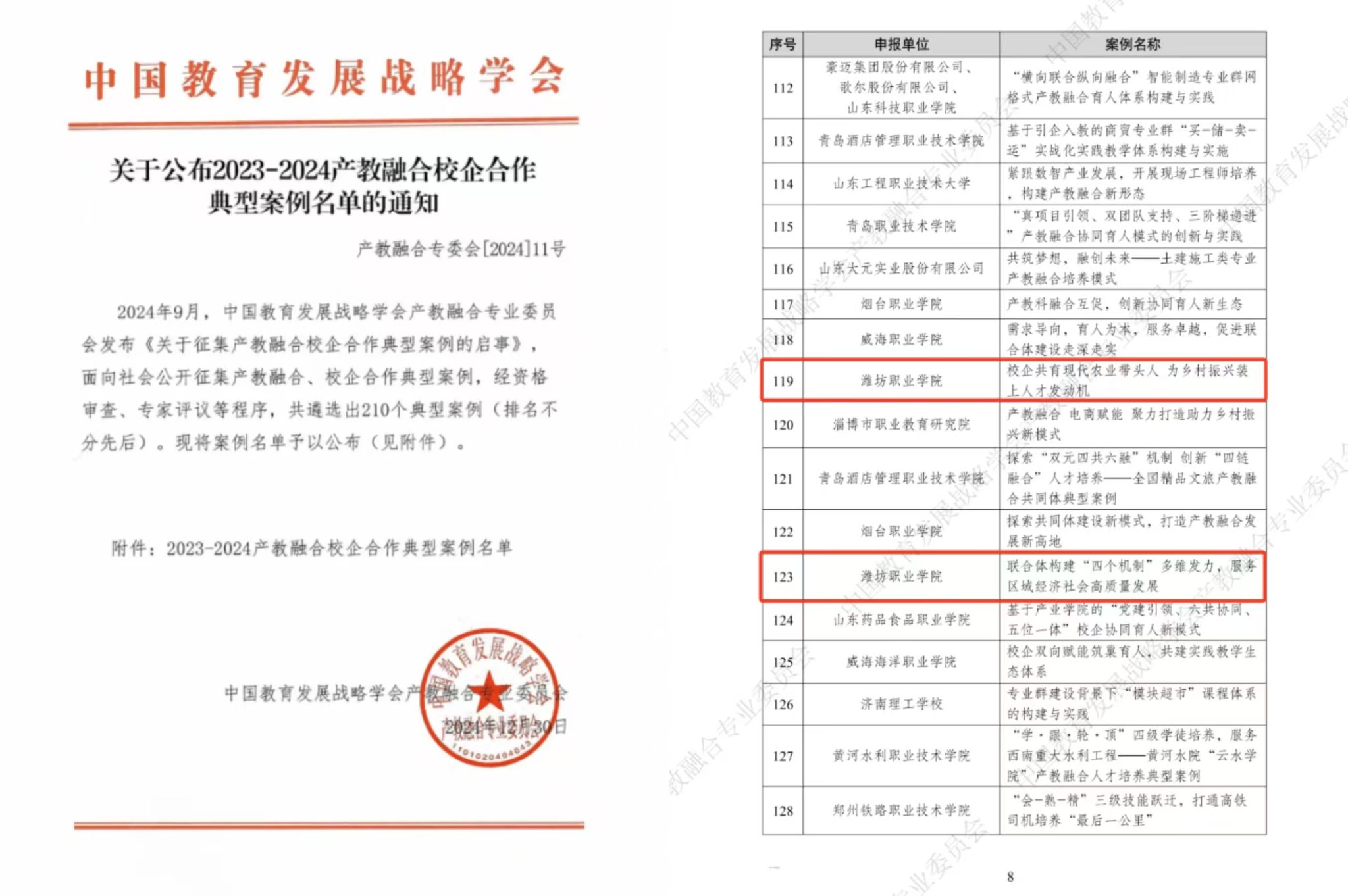 近日,中国教育发展战略学会产教融合专委会发布2023-2024年度产教融合校企合作典型案例名单,beat365牵头建设的滨海经济技术开发区市域产教联合体典型案例《联合体构建“四个机制”多维发力,服务区域经济社会高质量发展》、山东省现代高效农业产教融合共同体典型案例《校企共育现代农业带头人 为乡村振兴装上人才发动机》榜上有名。此次评选全国共有210项典型案例入选。