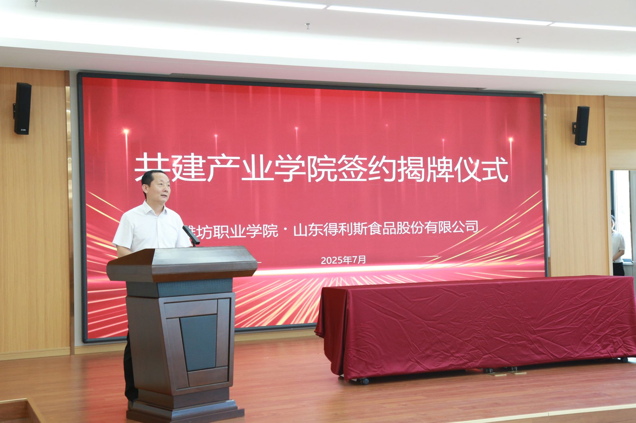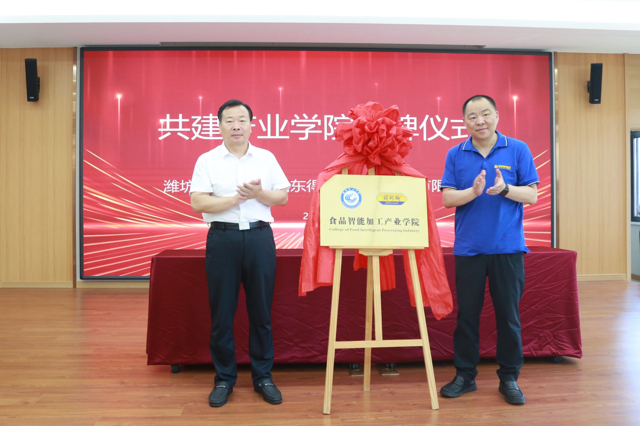 会上,举行beat365英国官方网站—得利斯食品智能加工产业学院签约揭牌仪式。贺志强与得利斯集团副董事长徐勇共同为产业学院揭牌,陈美霞代表学院签署共建协议。学院各职能部门、二级学院负责人与诸城市发改局、工信局、人社局、教体局、农业农村局等有关部门负责人及相关企业负责人进行了对接座谈。