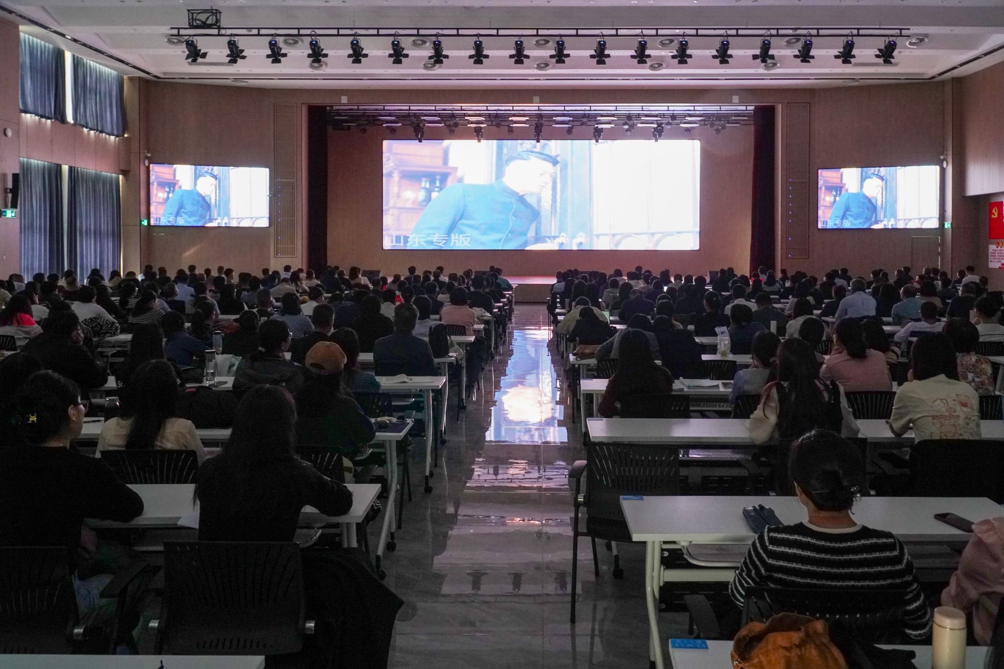 电影《断线之后》由中共潍坊市委宣传部携手寒亭区委、区政府等单位联合摄制,是一部基于共产党员刘英英勇无畏、深入虎穴、铲除奸佞的真实历史事件与人物原型改编而成的力作。影片生动再现了共产党人矢志不渝的坚定信念、英勇顽强的斗争精神,以及在关键时刻挺身而出,为党和人民利益不惜一切代价,成功挽救山东党组织的壮丽史诗,深刻彰显了共产党人的崇高爱国情怀与伟大英雄气概。影片展现的坚韧不拔的意志力、无惧生死的勇气、大公无私的奉献精神以及对党的绝对忠诚,深深触动了每一位教职员工的心灵,激起了强烈的情感共鸣与心灵震撼。