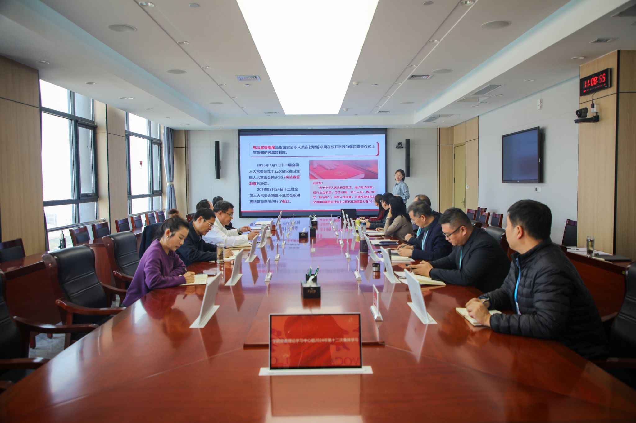 12月9日,beat365英国官方网站党委理论学习中心组召开学习会议。学院党委副书记韩瑞东主持会议,党委理论学习中心组全体成员参加。马克思主义学院周娉老师围绕习近平法治思想作深度解读。