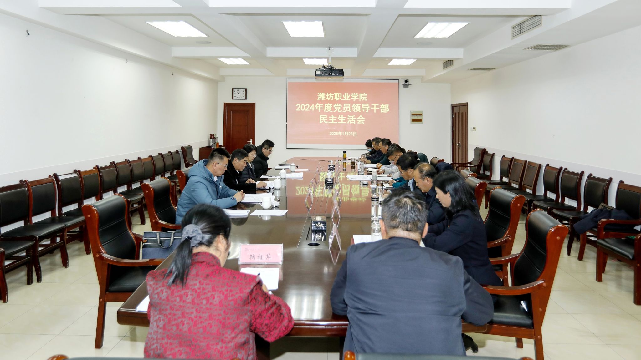 根据上级安排部署,1月23日上午,学院党委召开2024年度党员领导干部民主生活会,本次会议主题是深入学习贯彻习近平新时代中国特色社会主义思想,巩固深化党纪学习教育成果,综合发挥党的纪律教育约束、保障激励作用,为进一步全面深化改革、推进中国式现代化提供坚强纪律保证。市委第十四督导组组长罗相贤、副组长高霞、成员王林林、王龙起同志到会指导,学院领导班子成员参加会议。会议由学院党委副书记韩瑞东主持。