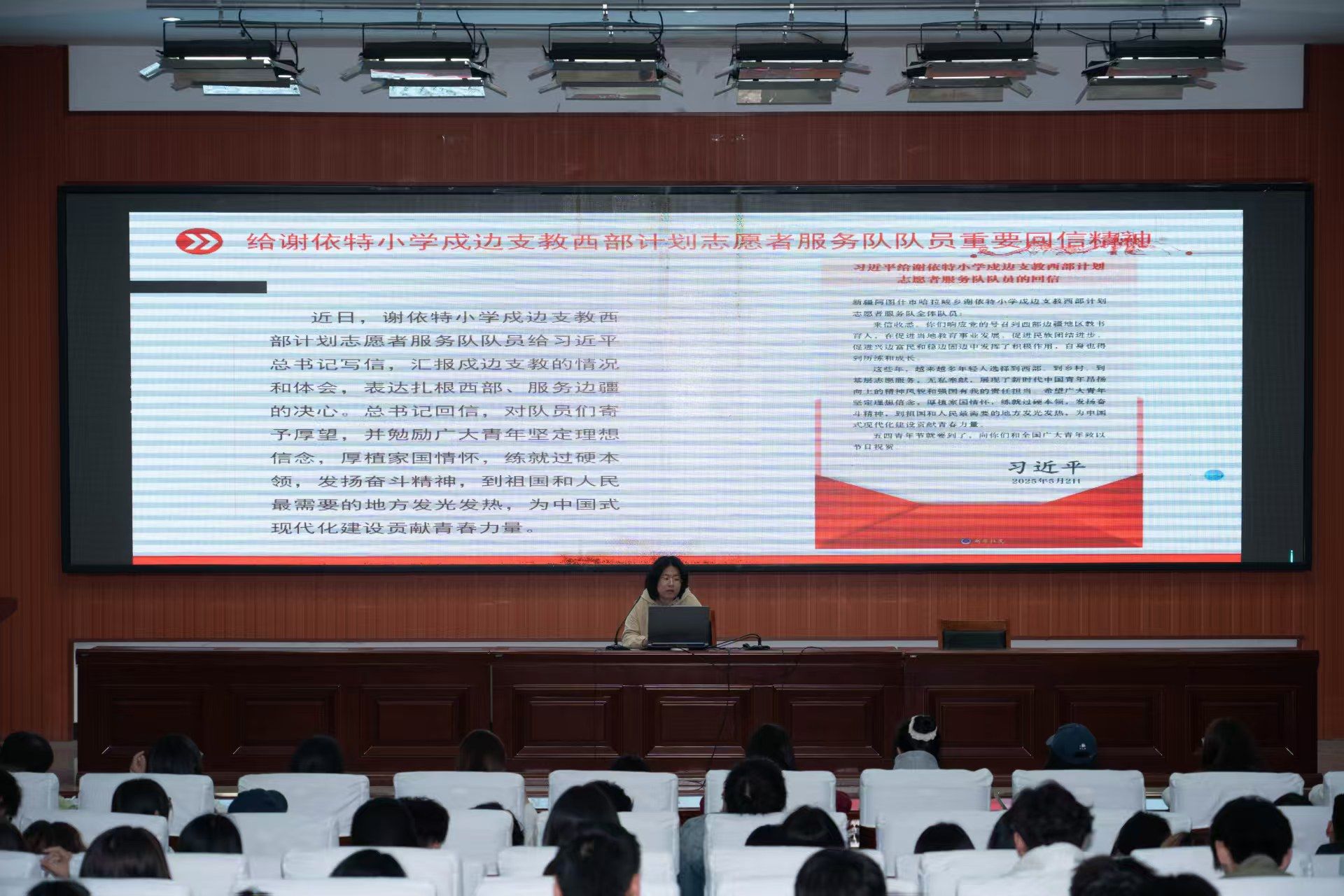 学院组织学生专题学习习近平总书记重要文章和给谢依特小学戍边支教西部计划志愿者服务队队员回信精神