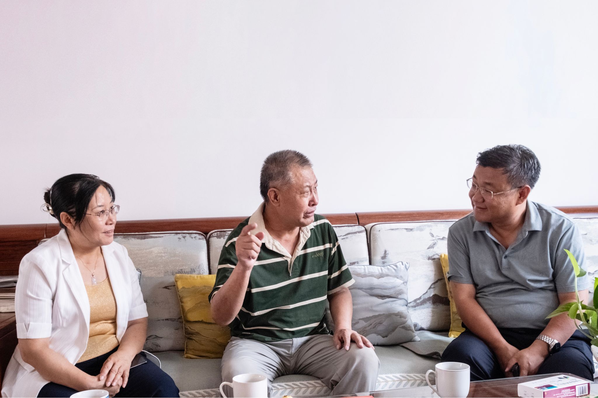 在走访邹立新等老党员过程中,王浩亲切询问他们的身体和生活状况,表示老党员们是学院发展的宝贵财富,感谢他们多年来为学院发展打下的坚实基础、作出的重要贡献,并介绍了学院当前的情况以及在申报“新双高”和争办职教本科院校等方面的进展,希望他们继续关心支持学院的发展,常回“家”看看。老党员们对学院的关心关怀表示感谢,回忆了自己在学院工作的点点滴滴,对学院取得的成绩感到由衷高兴,祝愿学院越来越好。在生活困难党员家中,韩瑞东详细了解他们的实际困难和生活需求,要求学院相关部门建立常态化帮扶机制,切实解决他们的“急难愁盼”问题,并鼓励他们保持良好心态,乐观生活。贺志强将“光荣在党50年”纪念章庄重地为老党员们戴在胸前,表示这枚纪念章是对老党员的“最高礼赞”,五十载初心如磐,半世纪使命在肩,老党员是学院事业的开拓者,是“潍职精神”的奠基人,他们“俯首甘为孺子牛”的奉献精神,永远值得老师们学习传承。