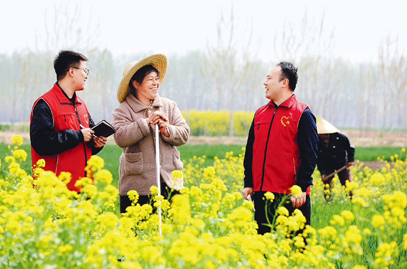 各地区以开展深入贯彻中央八项规定精神学习教育为契机,组织力量深入基层一线、田间地头走访调研,了解群众“急难愁盼”问题,将作风建设成果切实转化为为民服务的实际成效。图为2025年4月8日,山东省临沂市郯城县党员志愿者在田间了解春季农业生产及乡村产业发展情况。